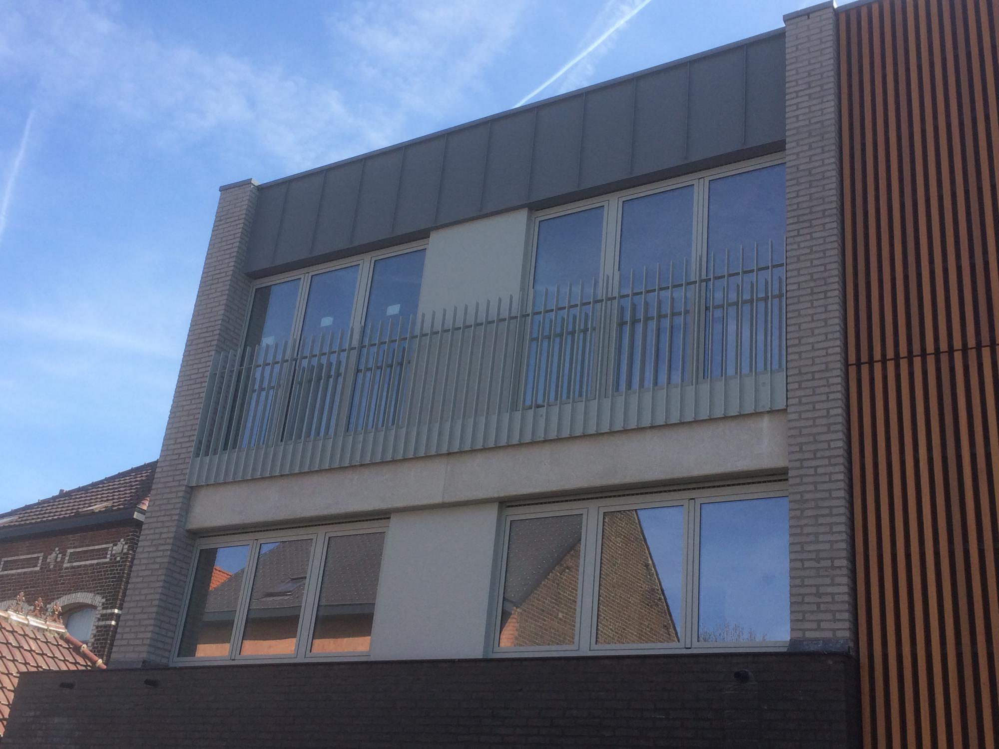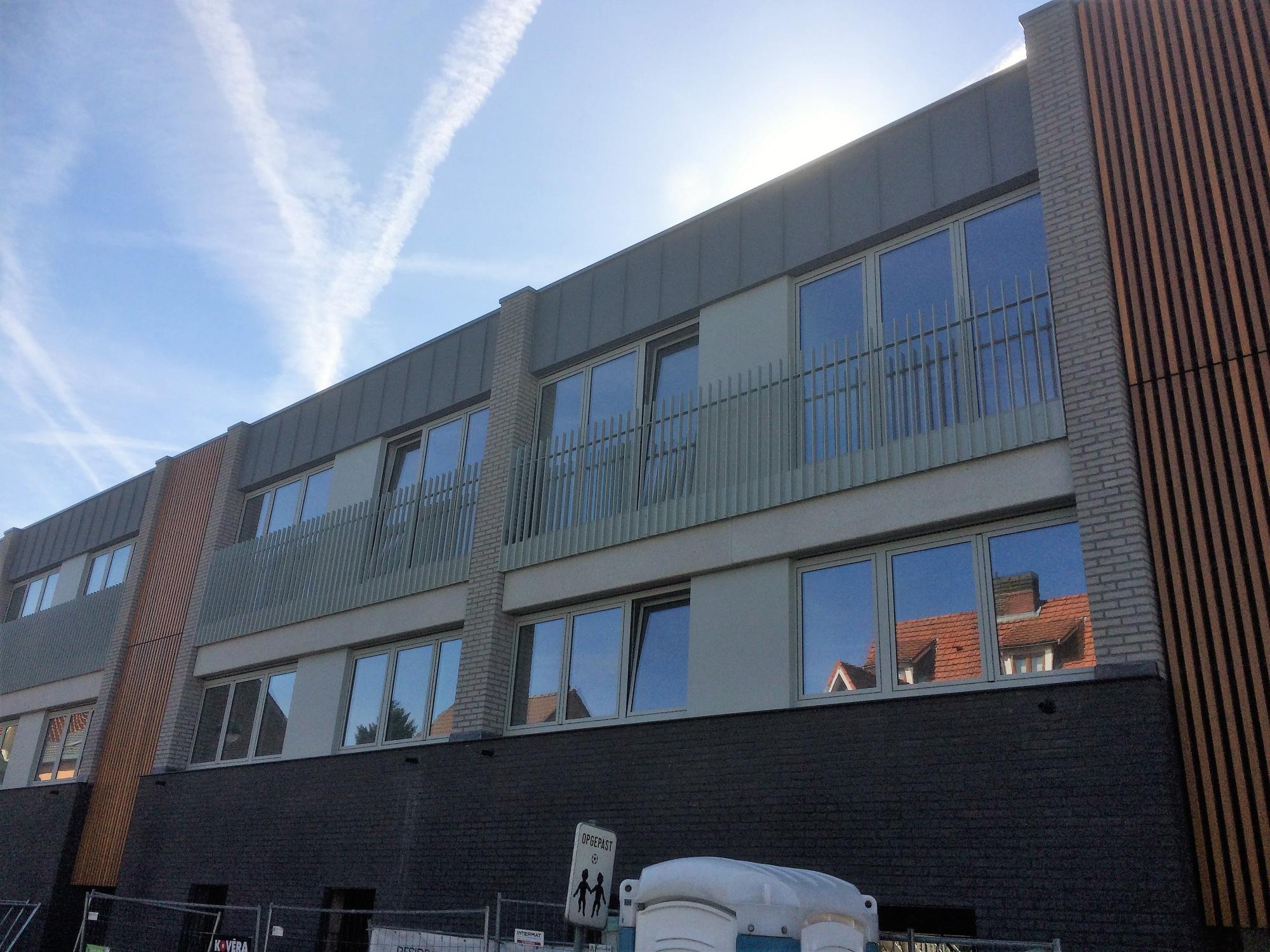 Dit was een project in opdracht van Durabrik waarbij LD Service verantwoordelijk was voor de levering en plaatsing van alle buitentrappen en borstweringen. Alle borstweringen en buitentrappen werden uitgevoerd in staal dat eerst gemetalliseerd en daarna in grijs gespoten werd. Kleur van de balustrades is steeds vrije keuze van de klant. Daarnaast plaatsten we ook nog een glazen balustrade met veiligheidsglas ingeklemd in een aluminium voetprofiel. De werken verliepen heel vlot en het geheel werd geplaatst in 5 dagen.